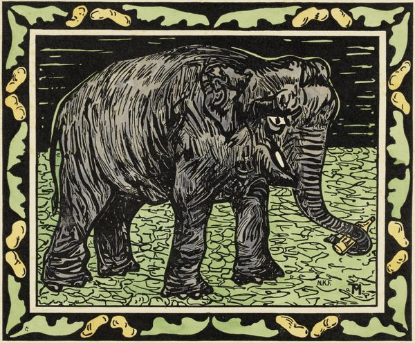 Curator: Here we have Lisa Milroy's painting, quite simply titled "Elephant." Editor: What strikes me immediately is how the painting evokes a sense of gentle monumentality, its rough brushstrokes contributing to this. Curator: Indeed. And it's interesting to think about the symbolism of the elephant—a creature often associated with wisdom, memory, and power, yet increasingly vulnerable in our world. Editor: Note how Milroy uses simplified forms and bold outlines. The palette, largely subdued, draws attention to the subject’s mass. Curator: It is a reminder of colonial history and the ongoing struggles for wildlife conservation in postcolonial landscapes. Editor: For me, the painting's strength lies in its ability to convey a sense of the essential "elephant-ness," without resorting to photorealism. Curator: Absolutely. It's a potent image that carries so much historical weight, even in its simplicity.