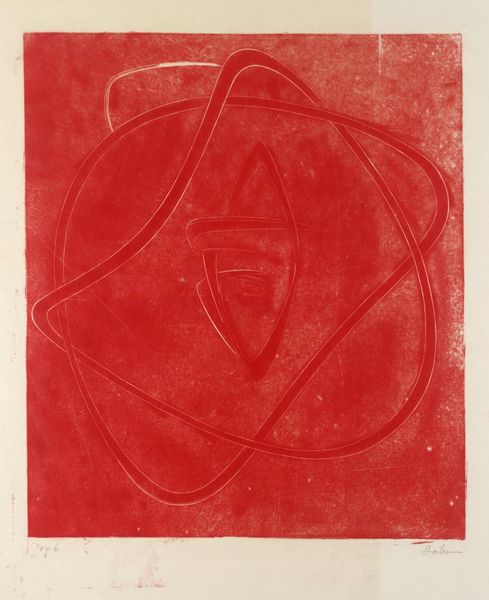Editor: So, this blue print by Naum Gabo, it doesn't have a title. It feels almost like peering into a deep sea, with these strange, geometric shapes floating in the abyss. How do you interpret this work? Curator: You know, it reminds me of trying to catch a glimpse of a thought, fleeting and just out of reach. Gabo was fascinated by the idea of space and how we perceive it. Those lines, they're not describing a thing, but rather the *idea* of a thing, its essence shimmering in the blue. What do you make of that central form? Editor: It does feel like the core of something, like an unrealized potential. I guess seeing it that way, the depth, the shapes all start to connect for me. Curator: Exactly! It's about the dance between reality and abstraction, isn't it? Makes you wonder what else is hidden just beneath the surface.