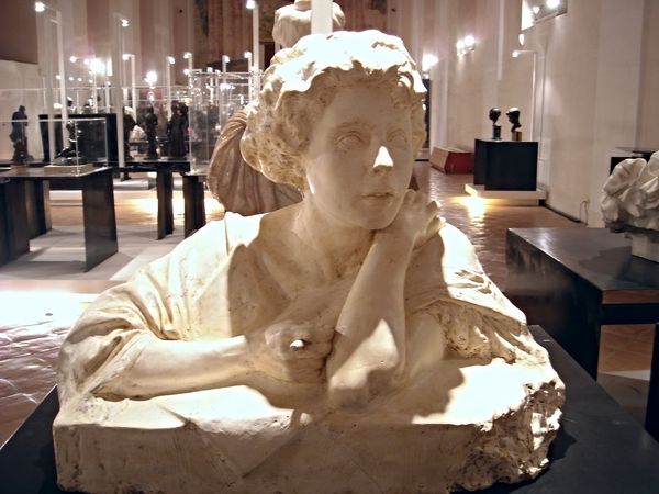 Editor: This marble sculpture is entitled “Portrait of Berta Hassler” by Filippo Cifariello. What strikes me most is how the rigid material seems to contradict the softness of her ruffled dress. What do you see in this piece? Curator: Well, looking at this piece, I see more than just a portrait. We need to consider the gaze. How does it engage with or resist the viewer? Does it challenge or reinforce societal expectations of women, particularly in relation to class and power during the period it was made? Editor: That's a very different way of considering portraiture than what I'm used to! Are you suggesting the sculpture is commenting on Berta Hassler's position in society? Curator: Precisely! The fact that she could commission such a work speaks volumes about her status. Consider the context. Realism, especially in marble, carries associations with power and permanence, harking back to classical ideals, often used to immortalize those in positions of authority. Yet, does the softness of the dress subvert those classical themes? What does this tension communicate? Editor: I guess I was too caught up in the beauty to think critically about the message of the work itself. The softness feels almost subversive when you consider the history. Curator: It's about questioning what seems natural or given. Did she have agency in the creation of this representation? Did Cifariello’s decisions have the ultimate influence, or did she want to be portrayed a particular way, and why? That would involve exploring gender and agency at that time. Editor: So, reading between the lines of a sculpture! That really changes my perspective. Curator: It is less about the aesthetic appeal and more about interrogating the layers of meaning embedded within the artwork and thinking critically about its social and historical implications. Editor: Now, I will look at art through the lense of cultural background. Thanks for widening my horizons!