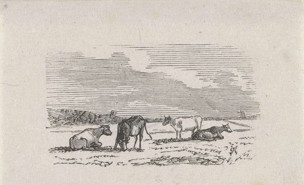 Editor: Here we have "Evening" by George Pike Nicholls, housed here at the Harvard Art Museums. I find the composition so tranquil. What do you see in this piece? Curator: It evokes a pre-industrial era, where the pace of life was dictated by nature. Consider the socio-economic implications; land ownership, labor, and the romanticized view of agrarian life versus its realities. How might this image reinforce or challenge those power dynamics? Editor: That's a perspective I hadn't considered. It seems to idealize a simpler life, perhaps obscuring some of the harsh realities of rural existence. Curator: Precisely. Art often functions as both a mirror and a mask, reflecting societal values while simultaneously concealing uncomfortable truths. Editor: I will definitely keep that in mind as I continue my studies. Thanks!
