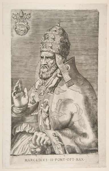 This engraving by Friedrich van Hulsen immortalizes Pope Marcellus II. The papal attire, rich with symbolic weight, presents a fascinating study in power and piety. Consider the papal tiara surmounting the image; it is a potent emblem of the pontiff’s threefold authority. This headdress, with roots stretching back to ancient Persian and Greek crowns, was adopted by the papacy to symbolize dominion over the spiritual, temporal, and purgatorial realms. This visual assertion of power recalls similar displays of authority found in ancient empires, echoing the divine right of kings. Yet, the tiara’s evolution shows a fascinating tension between spiritual humility and earthly power, a dichotomy that resonates in the collective psyche and continues to provoke discussion. It is a cyclical play between the sacred and the secular, demonstrating the enduring ability of symbols to evolve and reflect humanity’s complex relationship with power and faith.