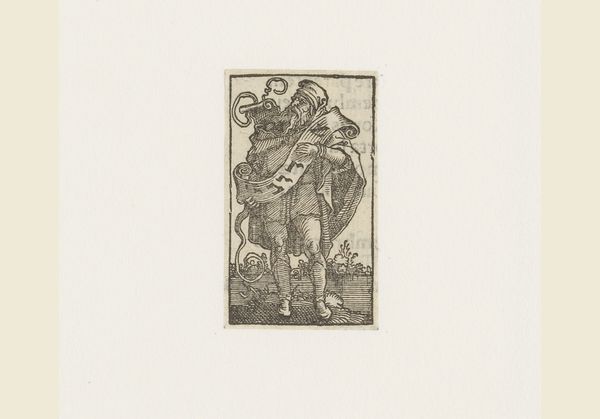 Curator: This engraving by Lucas Mayer from around 1580 is titled "Hoornspeler en een doedelzakspeler," depicting a horn player and a bagpiper. The precision of line is incredible. Editor: Oh, wow, it feels like a mischievous melody trapped in time! Look at those plump cheeks on the horn player; he's really belting it out. And the bagpiper has such a serious, concentrated expression. Curator: The engraving process itself, where lines are incised into a metal plate to hold ink, allowed for multiple reproductions and widespread circulation of images. This piece likely catered to a market interested in genre scenes and representations of everyday life. Notice also, next to the horn player, the artist carefully incorporates a flagon. This adds to our sense of an active pub scene where entertainment and alcohol combine. Editor: Exactly! It makes you wonder what the social context of the music was—celebration, raucous gathering, something else? Is there a little satirical bite, do you think? They look slightly dissolute with those wind-puffed faces. Curator: Satire wasn't uncommon, especially in depicting peasant life. And consider the medium – a print is accessible, made for wider consumption than, say, an oil painting for the elite. So yes, it likely reflects social commentary and broader values. It shows aspects of communal entertainment within early modern European society. Editor: And the materials. I’m drawn to how simple engraving could be; think of a relatively inexpensive piece of metal, readily available inks, and a press. Curator: Affordability meant dissemination, reflecting changes in class structure and an increasing consumer market during the late Renaissance. We are really observing not only art, but a new cultural value placed on musical craftsmanship and its everyday social use. Editor: Well, that was quite an adventure through 16th-century soundscapes and social practices. It’s amazing how such detailed hatching on a modest little piece of metal can make you want to tap your feet and reach for a tankard. Curator: Precisely, revealing much more than a simple tune, offering a glimpse into production methods and daily experience.