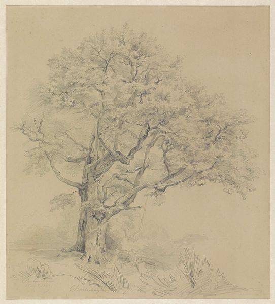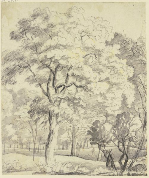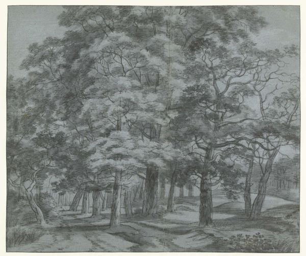 Editor: Here we have "Forest Section," a drawing of trees made with pencil, chalk, graphite, ink, and etching by Roelant Roghman, its date is unknown, but it can be found in the Städel Museum collection. The starkness of the drawing makes the piece feel lonely, almost desolate. What can you tell me about it? Curator: It is interesting that you sense loneliness here, given that landscape art of the Baroque era served a vital social function, linked to emerging national identities and land ownership. Roghman’s detailed rendering reflects the growing Dutch pride in their reclaimed landscapes. Who, after all, had the right to claim or depict this scene? Editor: So the picture claims something? How do you see this playing out in "Forest Section" particularly? Curator: Precisely! Think about it: what does the style do, and who can afford this artwork and the associated status that comes with it? This detailed style showcased dominion over, and understanding of, the land. Owning it became a political act of displaying Dutch wealth and mastery. Roghman democratized art by way of printmaking for wider appeal. It offered a pictorial assertion of control over nature. Editor: I never would have considered that such a simple sketch could convey this complex political message. Curator: Exactly! It invites us to ponder the relationship between art, power, and environment, then and now. What responsibility do artists have to shape public perception? Editor: I will be considering how landscapes can embody historical power structures moving forward!