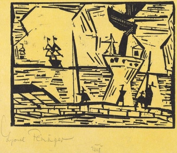 Antonio Frasconi created this woodcut titled "The Fulton Fish Market" using black ink on cream-colored paper. Frasconi was known for his politically engaged art, often addressing social and economic issues. This print offers a glimpse into the vibrant, bustling atmosphere of New York City's historic Fulton Fish Market, likely created mid-20th century. The bold, graphic style emphasizes the market's raw energy, with its stacks of containers, looming scales, and busy workers. The Fulton Fish Market was a major hub of commerce and labor, a place where social class and economic forces converged. Frasconi's choice of the woodcut medium, with its inherent roughness and directness, echoes the gritty reality of the market. The print can be seen as a commentary on the working class and the urban environment, reflecting the social conditions of the time. To fully understand this artwork, we might delve into historical archives and photographs of the Fulton Fish Market or study Frasconi's other works and writings to gain a deeper insight into his social and political concerns. The meaning of art resides in its historical and institutional context.