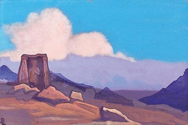 Nicholas Roerich painted these Himalayas with tempera on canvas. The sharp, ascending peaks of the Himalayas have long served as potent symbols of spiritual aspiration and transcendence. For centuries, mountains have been seen as sacred spaces, places where the earthly and divine meet. Think of Mount Olympus in Greek mythology, or Mount Sinai in the Judeo-Christian tradition. The upward-pointing form can be found across cultures, from the pyramids of Egypt to the Gothic cathedrals of Europe, each embodying a yearning to connect with higher realms. Here, the jagged edges of the mountains capture the intensity of spiritual ascent. It’s not just a physical journey but a psychological one, as the mountain evokes a deep, subconscious longing for something beyond our everyday existence. These mountains act as a reminder of our enduring quest for meaning, constantly resurfacing in our collective imagination, perpetually inviting us to look upwards.