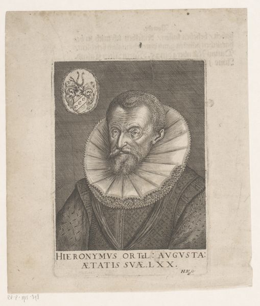 Curator: Today, we're looking at "Portret van een oudere man met een baret op zijn hoofd," or "Portrait of an Old Man with a Beret," an engraving on paper attributed to Salomon Savery, dating from 1633 to 1654. It's held at the Rijksmuseum. Editor: It has an aged quality from being within a book; the way the engraving captures the man's face feels very intimate and gives me a serious but quiet, contemplative mood. The soft lines feel incredibly delicate. Curator: Indeed. The artist employs a meticulous baroque style with the engraving medium that is often missed in portraits, allowing it to give the old man’s face a distinctive and dignified bearing. We can see Savery emphasizes light and shadow to sculpt the features. Editor: Right, but consider the context in which the portrait exists. The subject is presented next to several paragraphs of Dutch prose. Doesn't this raise questions about portraiture and its use for the glorification of powerful or famous men? The choice to highlight such men and bind it into a book feels deliberately commemorative and authoritative, even reverent. Curator: I understand, and I recognize the print sits alongside the text, imbuing it with meaning that stands apart from being observed purely for aesthetics or form. Nevertheless, there are very subtle details—notice how the engraver renders the fabric of the man’s beret and cloak and how light bounces from his mustache; it reflects skill beyond pure functionality. Editor: True, but it still invites us to question its intended audience. What did these displays of wealth or importance really signify? It is also critical to ask why we continually frame greatness according to patriarchal and exclusionary criteria. What is omitted is also critical to its understanding. Curator: A valuable point; one that reveals the tensions inherent in representations of authority during that time. Editor: Exactly. Thinking critically about these aspects enriches our viewing experience, making it more nuanced and historically aware.