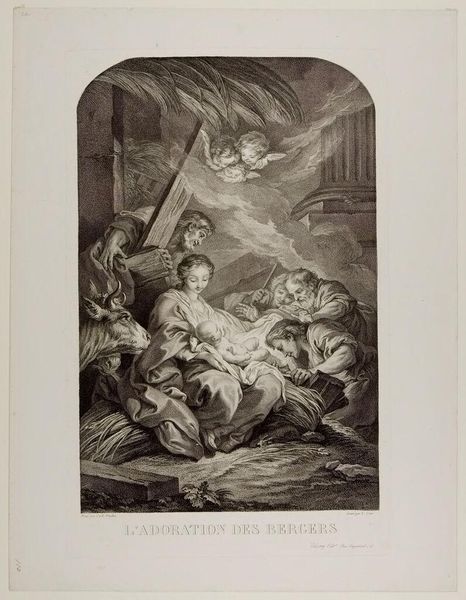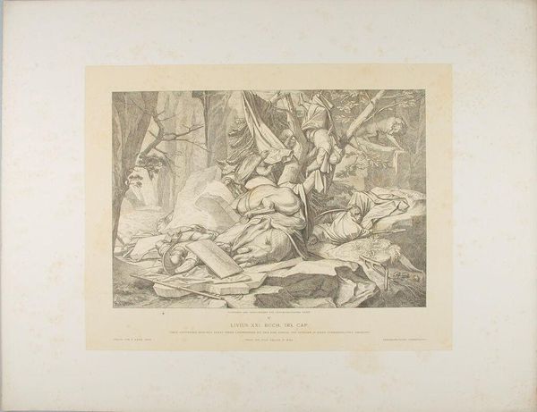 Curator: This is "The Temptation of Saint Anthony," an engraving by a Mr. Timms, housed right here at the Harvard Art Museums. Editor: Whew, it's got that old-timey horror movie vibe, doesn't it? I mean, bats, skulls, and a dude trying to read his way out of… whatever *that* is. Curator: Indeed! The visual language pulls from a long tradition of depicting Anthony’s struggles. See how the grotesque figures are meant to embody the temptations that plagued him? Editor: Totally. It's a snapshot of inner turmoil made monstrous. Like a bad dream you can't shake, projected onto reality. Curator: And note the prominent placement of religious symbols: the crucifix, the book. All meant to reinforce the saint's spiritual defenses. Editor: It's like he's trying to build a fortress of faith around himself. I wonder if he ever just wanted to yell, "Leave me alone!"? Curator: Perhaps. This piece reminds us that temptation and faith are timeless opponents locked in an eternal struggle within us all. Editor: Yeah, it's a little intense. I need a cappuccino after that.