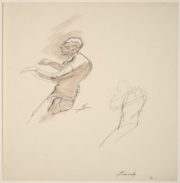 Donald Greason made this piece, Conductor, with ink wash on paper. It's all about process; a dance between control and chance. The ink wash creates these soft, blurry edges, kind of like a hazy memory. Then, these sharp, confident lines come in to define the figure. Look at the conductor’s arm, the way the line just flicks out, so quick, so sure. It’s like Greason is trying to capture not just what the conductor looks like, but the energy, the movement, the sound. The ink is translucent, creating a sense of depth and layering, while the rapid, almost scribbled lines provide a sense of immediacy and energy. This piece reminds me of Cy Twombly's drawings. Both artists share this interest in the gesture, the mark, the pure act of making. There's no right or wrong way to see it, just different ways of experiencing.