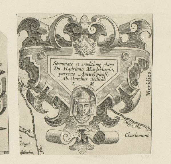 Editor: This is "Cartouche met rolwerk," or Cartouche with scrollwork, an engraving from 1601, currently residing in the Rijksmuseum. The artist is listed as Anonymous. I find the dense, intricate linework fascinating, but the purpose is not immediately clear. What stands out to you about this print? Curator: What interests me is the physical act of its creation. Consider the engraver's tools, the copperplate, the laborious process of incising those fine lines that you admire. It wasn’t simply about artistic expression; it was about skill, labor, and the reproduction of information. Notice the text. Who was the intended audience, and how would they have consumed this image and its accompanying text? Editor: That's interesting. The text does seem quite important, almost more so than the visual elements. Do you think this was designed more for information dissemination than artistic appreciation? Curator: Precisely! Think about the broader social context. Prints were a relatively new technology, allowing for the mass production and dissemination of knowledge. This "Cartouche," with its detailed scrollwork framing text, functioned as a vehicle for communicating ideas, possibly geographical or cartographical insights. Editor: So, it's about seeing art not just as an aesthetic object, but as a product of its time, shaped by materials, labor, and the desire to spread specific information. It’s reframing what we consider ‘art’ versus ‘craft’ or ‘information design.’ Curator: Exactly! The materials and methods of production *are* the message, in a sense. Considering this work as an artifact born out of material conditions offers critical perspectives on production processes in early modern Europe. Editor: That gives me a completely different perspective on this piece! I was initially drawn to the detail, but I see now that the *how* and *why* it was made are just as compelling as the *what*. Curator: Indeed. Understanding the means of production deepens our understanding of the artwork itself.
