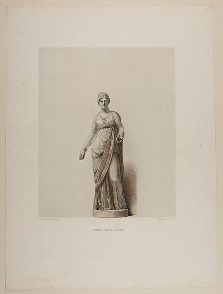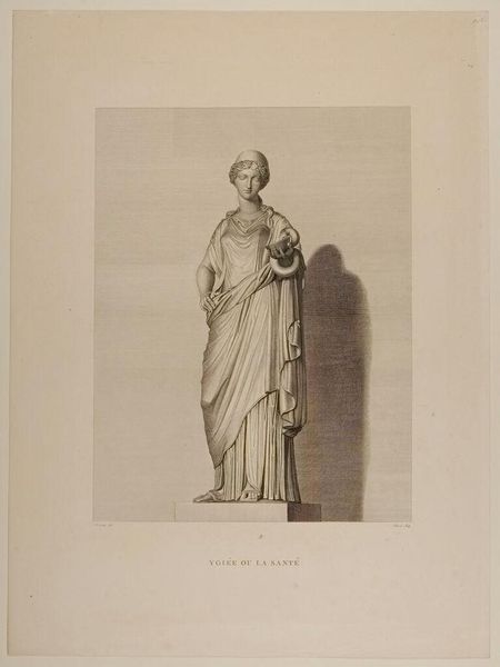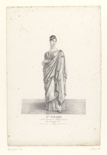 Editor: This is Pierre Louis Henri Laurent's "Young Roman Girl." I’m struck by how classical and serene she seems. How would you interpret this depiction? Curator: She reminds me of an unearthed memory, pristine yet distant. Notice the drapery—it's not just fabric, it’s a conversation between shadow and light, isn't it? I wonder, what stories does she hold from centuries past? Editor: That's a lovely way to put it. It is interesting to wonder what life she had. Curator: Exactly! Art becomes a mirror, reflecting our own stories and imaginings.