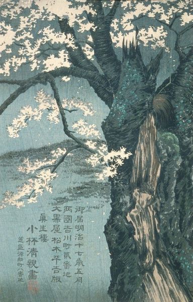 Editor: This is "Picnic Under Maple Tree" by Oku Teishō. The maple leaves are so vibrant! What does this scene evoke for you? Curator: The maple, or *momiji*, is deeply symbolic. Its changing colors evoke the passage of time, the beauty of impermanence. Note how the figures are placed beneath it, partaking in a ritual of observation and appreciation. Editor: A ritual? Curator: Yes, like *momijigari*, the autumn tradition of viewing the changing leaves. The artist is capturing not just a scene, but a cultural memory, a shared experience of beauty and reflection. It connects us to generations who have found solace in nature's cycles. Editor: That's fascinating; I hadn’t considered the cultural weight of a simple picnic scene.