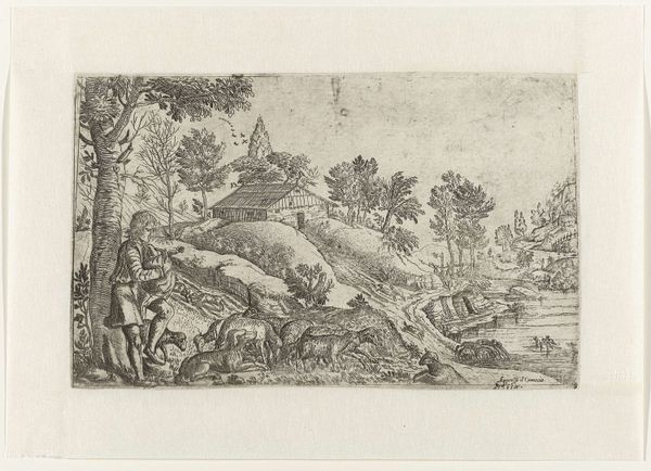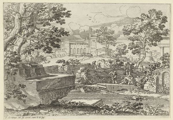 Gerrit Grasdorp made this landscape with antique ruins with pen in gray and brush in gray. The drawing’s composition invites us to reflect on the interplay between the timeless grandeur of classical architecture and the relentless passage of time. Grasdorp uses washes to bring out the contrast between light and shadow. The ruins in the foreground and the distant architectural forms create layers within the composition. The artist positions the viewer at a vantage point where nature and culture converge. There is a dialogue between the artificial and the organic. The ruins are being reclaimed by nature. The drawing makes you think about cycles of destruction and renewal. The careful rendering of details and the controlled tonal range give the drawing a contemplative mood. Grasdorp creates a dialogue between the solid forms of the architecture and the fluid lines of the natural elements. The drawing offers us a space to ponder how human achievements fade into the broader scope of history and nature.