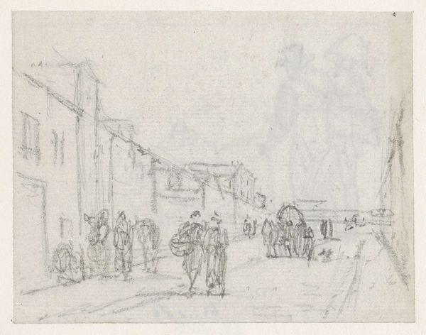 Georges Michel composed "Half afgebroken huizen aan de rand van de stad" as a drawing using graphite. The somber monochromatic palette of the artwork evokes a sense of melancholy. Michel masterfully utilizes line and form to create a composition with a strong sense of depth. Michel's drawing presents a structured exploration of decay and transition at the city's edge. The architectural ruins, rendered with careful detail, are a testament to the passage of time. The deliberate arrangement of the buildings and open space invites the viewer to consider the structural elements and the narrative they convey. The work destabilizes fixed notions of urban progress, prompting reflection on the cyclical nature of construction and destruction. It presents a semiotic system wherein the crumbling structures symbolize broader societal shifts. Michel challenges the viewer to interpret these visual signs. Consider the lines defining the buildings' edges; their precise yet imperfect rendering encapsulates a moment of decline frozen in time. This artwork is not just a depiction of a place but also an invitation to contemplate the transient nature of human endeavors and the continuous cycle of transformation.