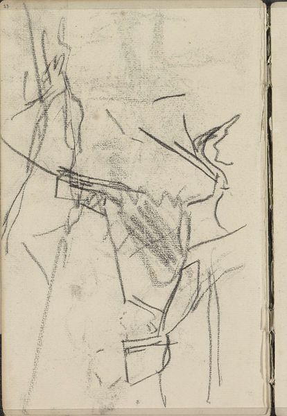 George Hendrik Breitner made this sketch of a horse using graphite on paper. It's a simple pairing of materials, and very direct. Graphite, essentially processed carbon, offers a broad spectrum, from light grey to near black, depending on the pressure applied. The paper is coarse, which gives a toothy quality to the line work, resulting in its broken and grainy textures. What interests me most is that this sketch is not made for public consumption, but as a study aid. Breitner was known for his paintings of working-class life, often featuring horses used for labor. This sketch gives us insight into his process of seeing and recording the world around him. The seemingly casual strokes capture the animal's form, but also hint at its social role as a beast of burden in the rapidly industrializing city. This piece invites us to consider the labor involved not just in the scene depicted, but also in the act of artistic creation itself. It collapses any assumed divide between fine art and the everyday experience of work.