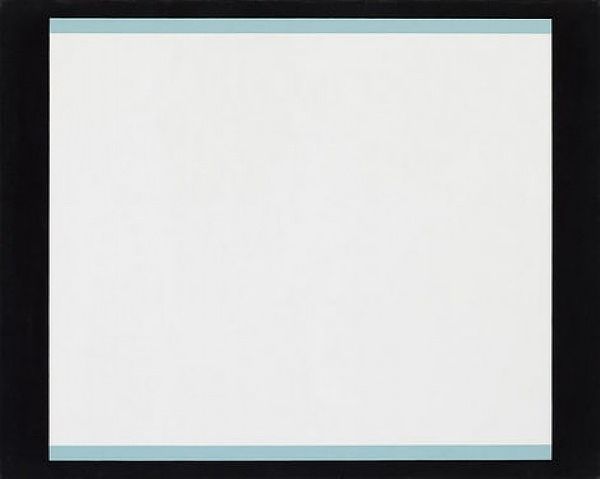 Editor: This is William Turnbull's "6," from the Tate Collections. It's simply a pale green rectangle on paper. I find it quite serene, almost meditative in its simplicity. What do you see in this piece? Curator: The piece compels us to consider the fundamentals of art making. Notice the subtle variations in the pigment's application, the materiality of the paper itself. Editor: The slight texture, you mean? Curator: Precisely. It challenges the viewer to find meaning not in representation, but in the pure visual experience. How does the size of the work influence your perception? Editor: It's bigger than I expected, that makes it more engaging. It definitely highlights the importance of line and colour here, stripping everything else away. Curator: A fruitful observation. The artist invites us to slow down and consider the essence of form and colour.