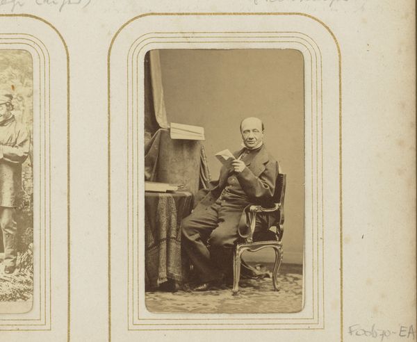 Editor: Here we have Timothy O'Sullivan's gelatin-silver print, "Major General Pleasanton and General Custer," taken in 1863. It has a strangely relaxed feeling, considering the context. What catches your eye when you look at this piece? Curator: I see a fascinating intersection of labor, materiality, and the performative aspects of war. The very act of O'Sullivan lugging his photographic equipment across battlefields is a testament to labor. How the materiality of the print itself – the gelatin silver, the paper – connects us to the past. And, importantly, the photograph itself becomes a commodity, a collectible object in the expanding marketplace for war imagery. Does that materiality speak to you? Editor: It's interesting to think about the physical effort that went into creating this seemingly still image. So the soldiers in the image, what kind of statement do you feel it tries to make, and about which materials? Curator: Precisely. The materiality here isn't just about the photograph; it's about the very construction of identity and power. Note their clothing, equipment, weapons, horses… These materials signified authority and social standing. Their presentation isn’t arbitrary, but rather manufactured to impress. Can you see how this performance is deeply rooted in social dynamics? Editor: I think I understand what you're trying to say, but it almost seems staged for something terrible that wasn’t supposed to feel…normal. Curator: Exactly! It seems both banal and deeply unsettling at the same time. Think of how the mass production of photography allowed for this almost casual portrayal of power, circulated widely, normalizing what was, in reality, a landscape of conflict and immense suffering. We should be equally attentive to what’s missing from this scene too; such as images of the labor it took to support war efforts. What do you think is most fascinating about these details? Editor: Now that you point out that performative angle, it's like a quiet propaganda, meant to communicate unwavering authority. It does make the everyday settings feel deeply unnerving when juxtaposed with the power structures at play. Curator: Absolutely. Seeing how the image’s materiality and presentation contribute to this carefully crafted message is very relevant. I am grateful for your help making that come across in this tour.