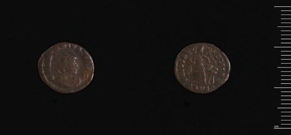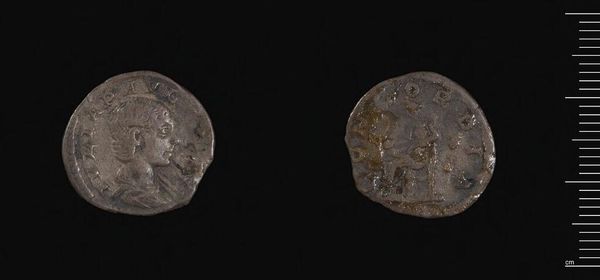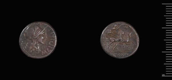 Editor: This is a quinarius of Octavian and Marc Antony. It was produced by the Moving Mint and weighs 1.7 grams. It’s so small, yet it holds the faces of powerful leaders. What can you tell me about the political context of this coin? Curator: This coin embodies the intersection of power, propaganda, and everyday life in the Roman world. Issued by Marc Antony, it served to legitimize his authority and alliance with Octavian during a period of intense political maneuvering. Consider how such imagery, circulated widely, shaped public perception and reinforced political narratives. Editor: It's like a miniature billboard! Did the people of the time see it that way? Curator: Absolutely. Coins were a primary means of disseminating political messaging. How do you think its materiality—the fact that it was a small, easily portable object—affected its reach and impact? Editor: That makes so much sense. Seeing how leaders controlled imagery, even in this small way, is really eye-opening. Curator: Indeed. It highlights the public role of art and the carefully constructed politics of imagery in ancient Rome.