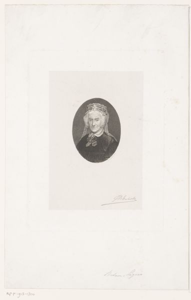 Curator: Up next, we have a portrait of Mevrouw Melvill van Carnbee, a pencil drawing crafted sometime between 1851 and 1883 by Johan Hendrik Hoffmeister. It's got a quiet sort of presence. What strikes you first about it? Editor: It's interesting you say "quiet" because my immediate thought goes to the politics inherent in portraying wealthy, often white, subjects throughout art history, especially women whose images were typically vehicles for showcasing status rather than exploring inner lives. It makes me wonder about Mevrouw van Carnbee's own agency in this portrait. Curator: Agency, yes, a vital layer. I get this feeling she actually possessed some agency given Hoffmeister's attention to her expression—there’s a certain directness, wouldn’t you agree? The lace bonnet feels… almost subversive. Editor: I think the bonnet, rather than subversive, highlights societal expectations. The detail is meticulous, drawing attention to wealth and social standing, constructing the subject as respectable, in line with bourgeois expectations of the period. I see it reinforcing rather than resisting those boundaries. Curator: That's a potent reading! Yet, for me, that precisely-rendered lace has an audacious feel. Consider the medium—just pencil. Hoffmeister, seemingly bound by conventions, manages to reveal subtle human qualities. Editor: I agree, there is some nuanced expression that emerges through that rendering; the softness around the eyes and the slight pursing of her lips offer glimmers of individuality and maybe, if we're lucky, defiance peeking through the established codes. It reminds me of how subjects coded in portraiture were limited at the time to displays of societal and class identity. Curator: Definitely, you can't dismiss those boundaries, absolutely. The interesting push and pull adds dimension. Ultimately, doesn't art breathe best when sparking dialogues, questioning assumptions about these encoded notions? Editor: Yes, questioning not just aesthetic value but social, cultural, and historical value—that is how we find and assign meaning, especially when faced with objects and subjects historically defined. Curator: Spot on! And revisiting portraits such as this reminds us how far we’ve come while seeing how far we still must go.