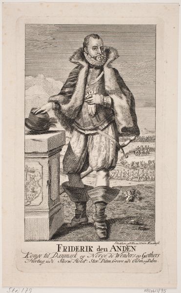 This print of a gardener was made by Francesco Villamena sometime between the late 16th and early 17th century. The artist employed the process of engraving, cutting lines into a metal plate, which was then inked and pressed onto paper. This method allowed for the wide distribution of images, playing a key role in the rise of visual culture. Notice how Villamena used carefully placed lines to describe the gardener's worn clothing, his weathered face, and the tools of his trade – the spade and rake leaning against the ground. The texture of the print is a direct result of the engraver's labor, each line meticulously carved, reflecting the manual effort of both the artist and the gardener depicted. This print is more than just a portrait; it's a statement about labor and class. By choosing a common laborer as his subject, Villamena elevates the dignity of work. The image reminds us of the countless hours of labor required to sustain society, blurring the lines between high art and the everyday realities of life.