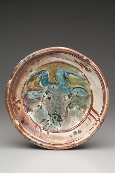 Curator: Here we have an Incense Container, or KÅgÅ, with Pea Pod and Vine Design, attributed to Ogata KÅrin. Editor: It's intriguing—the organic shapes against that warm, mottled ground. What materials are we looking at? Curator: The piece is crafted from ceramic, adorned with mother-of-pearl inlay. The pea pods themselves seem to be rendered in a different ceramic, creating texture. Editor: The pea pod and vine motif is so interesting for something intended for ritual use. The pea, across cultures, is often associated with abundance and new beginnings. Curator: Precisely. Incense itself carries layers of symbolic weight - purification, connection to the divine, a pathway for prayers. Combined with the pea imagery, it becomes a powerful statement of hope and renewal. Editor: I'm drawn to the labor involved, the careful inlay work. Someone devoted considerable time to constructing this small object. Curator: Absolutely, and that devotion underscores the value placed on these rituals and beliefs. Editor: Seeing this makes me think about how daily objects can be imbued with so much symbolic meaning. Curator: And how that meaning persists through material culture.