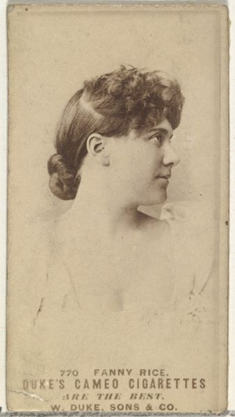 Lillian Tyson, from the Actresses series, was created by the Kinney Brothers Tobacco Company as a promotional item for Sweet Caporal Cigarettes. These cards, popular at the turn of the 20th century, offer a glimpse into the cultural values and commercial strategies of the time. Actresses, like Lillian Tyson, were figures of aspiration and fantasy, embodying ideals of beauty and success that captivated the public. Consider the implications of mass-producing and distributing images of women. These images helped to solidify and spread certain standards of beauty and fame. What did it mean for women like Tyson to have their likenesses used in this way? What pressures did it create? As you consider this image, think about the complex relationship between art, commerce, and identity, and the historical forces that shape our understanding of beauty and celebrity.