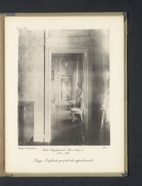This photograph captures the hallway at Steenschuur 7, or Maison Wijtenburg, in Leiden. It was taken by an anonymous photographer working with Monumentenzorg. In this monochrome image, the hall seems to stretch out, light at the end. We see doors and windows lining the hallway, a symmetrical composition which gives the photograph a very clean feel. It is a moment suspended in time. The photograph is an architectural record, but it also hints at the stories held within these walls. It asks us to consider who walked these halls, what their lives were like, and how their stories have shaped the identity of this space. It is a reminder that architecture is never just about bricks and mortar; it's about the people and histories it houses.