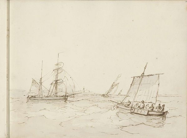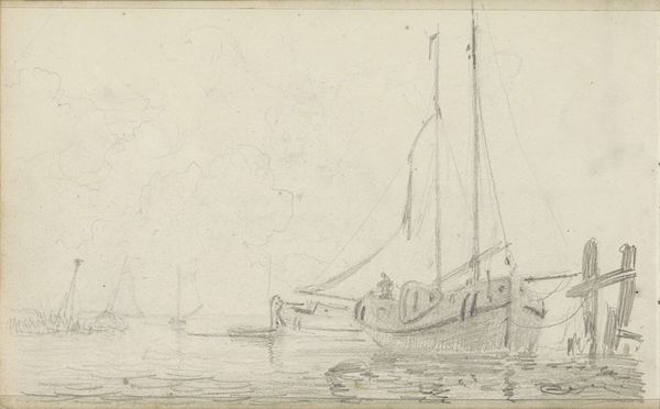 Petrus Johannes Schotel made this drawing of moored ships in a harbour with pen in gray ink and brush in gray ink. The stark reality of shipbuilding emerges from this seemingly simple sketch. The labor behind these vessels is implied in the precise, technical rendering of the ships' rigging, hulls, and docks. Schotel’s mastery of the pen captures the weight and texture of the wood, the tautness of the ropes, and the gritty atmosphere of the harbor. The artist's hand, guided by a deep understanding of maritime construction, becomes a tool to highlight the immense human effort required to build and maintain these ships. Beyond aesthetics, this drawing serves as a reminder of the economic engine these ships powered. They facilitated trade, transported goods, and connected distant lands. By focusing on the tools and materials of maritime labor, Schotel elevates the everyday into the realm of art. It allows us to reconsider the social and economic forces that shaped the maritime world.