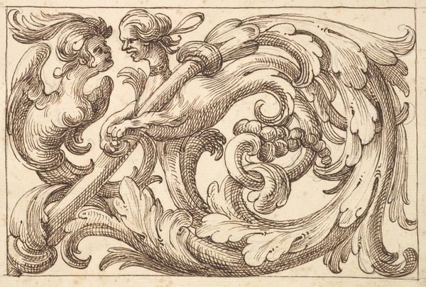 This horizontal panel design with a young man and a male sphinx interspersed between acanthus rinceaux was created anonymously, and its exact date remains unknown. The drawing illustrates a complex tension between classical ideals and the realities of human existence. The male figures, intertwined with lush acanthus leaves, evoke a sense of vitality. But it also leaves room for a contemporary consideration of gender and sexuality. The depiction of the male nude challenges traditional notions of masculinity, perhaps reflecting a more fluid understanding of identity. Historically, sphinxes were guardians, and this panel might invite us to consider the guardians of our own identities and spaces. What do we choose to protect, and what do we allow to be transformed? Ultimately, the drawing is a beautiful reminder of the complexities inherent in the human experience. It is an exploration of the self in relation to the world.