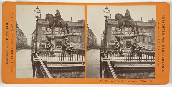 This photograph of the equestrian statue of Frederick the Great was made in Berlin by Johann Friedrich Stiehm. It's an albumen print, a common process in the 19th century. The photograph itself is a commodity, and the image it depicts, a Prussian king, shows the close relationship between production and power. The albumen process involved coating paper with egg white and then a silver nitrate solution, making it light-sensitive. The negative was then placed on the paper and exposed to sunlight. The resulting print has a smooth surface and a wide tonal range, capturing the details of the statue and the surrounding architecture. The photograph’s materiality—its reliance on both skilled darkroom work and mass manufacture – highlights its place in a rapidly industrializing society. Stiehm’s photograph reminds us that even seemingly straightforward images are the result of complex social and economic forces. It encourages us to look beyond the image itself and consider the labor, materials, and technologies that made it possible.