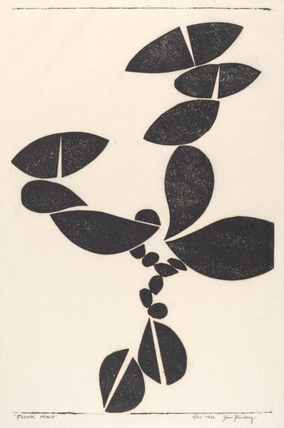 Georges Braque made this print, titled "From 'Le tir à l'arc,'" using lithography. The forms float softly, almost like memories of flowers. There's a lovely, barely-there quality to the grey background, achieved through lithography, where the stone's surface seems to breathe. The petals are defined with simple dark lines, but never quite fully, they're just suggested. It’s like the essence of a flower, not the flower itself. I'm drawn to the way the texture of the paper becomes part of the image, that handmade quality. It’s like seeing the ghost of the artist's hand. That delicate web of lines almost makes the flowers seem to shimmer. Braque’s interest in distilling form down to its most essential elements reminds me of Matisse’s paper cut outs. Both artists share a joy in playing with shape and space, creating worlds where abstraction and representation dance together. It shows how art is a never-ending conversation, with each artist adding their own voice.