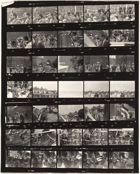 This is Robert Frank’s “Central Park, New York City,” a photographic contact sheet of black and white film. What strikes me is the raw, almost brutal honesty in the way Frank captures New York life. It’s like he’s not trying to pretty anything up, just showing you what’s there, the mundane, the gritty, and the strangely beautiful. Look at the texture in these images. It’s not about smooth gradients or perfect focus; it's about capturing a moment, a feeling. The contrast is high, and the blacks are deep, giving it a stark, almost confrontational feel. There’s a specific frame, ninth from the top left: it looks like the aftermath of something, a raw snapshot of the urban experience. Reminds me a bit of Garry Winogrand, but with a more melancholic edge. It’s a conversation, this photography thing.