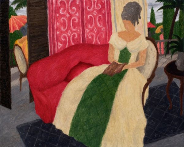 Iwo Zaniewski created "Baroque Salon 2," a piece which prompts reflection on gender, class, and identity within historical contexts. The women depicted, adorned in elaborate gowns reminiscent of the Baroque era, invite us to consider the rigid social structures of that time. The artist’s choice of attire places them within a specific socio-economic class, constrained by expectations of femininity and decorum. This alludes to the limited agency afforded to women, particularly those of privilege, who were often confined to roles dictated by societal norms. Yet the woman in the red dress, with her back to us, perhaps suggests the desire for individuality and self-expression. The room is a complex set of spatial relationships. Zaniewski's work navigates the space between homage and critique, challenging us to examine the legacies of power and representation that continue to shape our understanding of gender and identity today. The vivid colors and dream-like setting create an immersive experience, inviting viewers to contemplate the complexities of history and their resonance in the present.