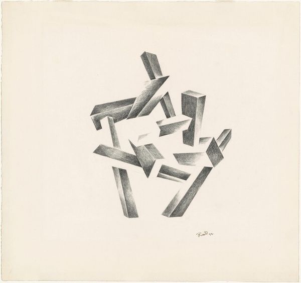 Curator: Here we have Sol LeWitt's "Incomplete Cube," a drawing from 1974. It's striking in its simplicity. Editor: Yes, I'd say simplicity verging on austerity. My initial reaction is a feeling of unease, that something's not quite right, almost like a diagram for something impossible to construct. Curator: Well, consider LeWitt's emphasis on the idea, the concept, over the finished product. He often used assistants to execute his wall drawings and structures. It's less about a precious art object than it is about labor and execution following clear instructions. In this case, you know, he is taking a pencil to paper and outlining a basic incomplete form. It seems like a rudimentary task, really. Editor: That incompleteness is very potent, though. Cubes in general, in art and in our minds, symbolize stability and solidity. This fragmented cube could symbolize, through its negative space, concepts of imperfection and instability in life and existence, something that perhaps deeply affected society during the time it was made, after the turbulent '60s. Curator: Interesting point. We might also read that as him taking the cube as the base unit, deconstructing it, and putting it in dialog with seriality and progression and labor that can be replicated according to rules or sets of instructions. The work becomes less about pure aesthetic form and more about a visual system, the idea made tangible through process and repeated production. Editor: But it's precisely through its stark reduction and careful presentation that the artist communicates so effectively. LeWitt has, in a sense, constructed his cube like an ideogram, making its symbolic essence all the more readable. Even viewers without knowledge of Minimalism would feel it in their bones. Curator: Absolutely. It shows how seemingly basic forms, line, and spatial representation, still embody such depth when we think about their manufacture, and meaning to others in the process. It brings forth so much that remains to be analyzed. Editor: I'll carry that sentiment forward with the knowledge that geometric figures, no matter how simply presented, carry such a weight and history.