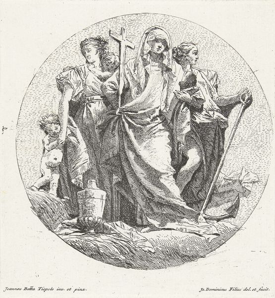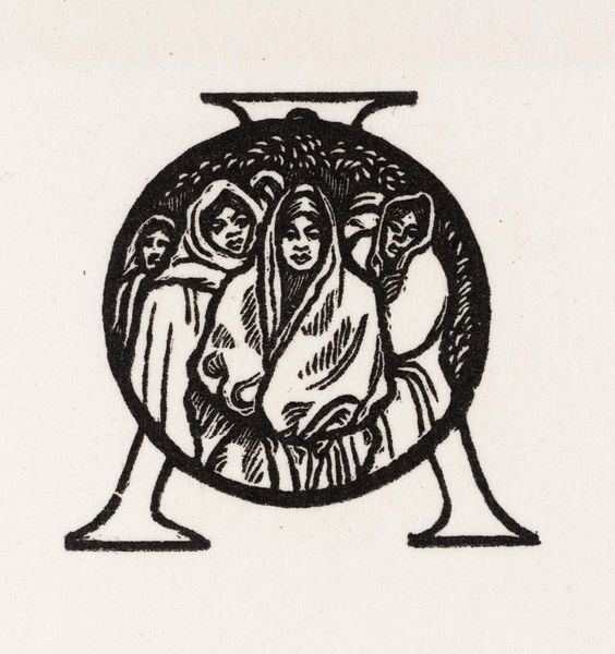 Curator: This is Lucien Pissarro’s wood engraving, "Consultation," held here at the Tate. Editor: Oh, this small circle… It feels like a secret being shared, doesn’t it? Like a coven of wise women whispering ancient truths. Curator: The piece showcases Pissarro’s interest in rural life and community, common themes, particularly in the context of late 19th-century social movements. Editor: It makes me wonder what they're talking about! Is it love, or maybe a new herbal remedy? The tight composition creates this real feeling of intimacy. Curator: Absolutely. Pissarro's commitment to the Arts and Crafts ethos shines through, celebrating the beauty of handcrafted design, and the role of art in everyday life. Editor: Yes, the floral border feels both delicate and strong, containing the mystery within, very lovely. Curator: Indeed, a testament to the power of simple forms to evoke profound feelings. Editor: I think that you are right.
