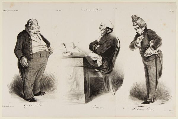 Editor: This lithograph by Honoré Daumier is titled "One good idea of the Chinese...". It depicts two Chinese figures with a cannon, and the inscription suggests a commentary on France. What historical context am I missing here? Curator: Consider the time. Daumier likely made this during a period of Western colonial expansion in China. The image plays on anxieties about Chinese military capabilities, reflecting European fears of being outwitted or challenged. What do you make of the caricatured depiction of the figures? Editor: The exaggerated features definitely seem to reinforce a sense of "otherness," perhaps justifying colonial actions. I hadn't considered how anxieties of the time could be weaponized like this. Curator: Exactly. And by depicting them painting stripes on the cannon, Daumier is perhaps ridiculing Chinese innovation, or lack thereof, as perceived through a Western lens. Editor: So the art isn't just reflecting history, but actively participating in shaping public opinion and justifying political actions. I see it now. Curator: Precisely. It’s a powerful example of how art and politics intertwine.
