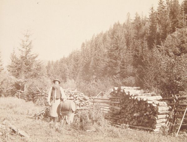 Curator: Here we have John P. Soule's 1870 stereograph, "Crescent Lake, at head of the Merced River, Mariposa Co." currently residing here at The Art Institute of Chicago. What strikes you first about it? Editor: This photo, in its quiet way, is whispering stories of solitude. I mean, look at that horse—or is it a mule?—its stillness, echoed by the figure beside it. It is almost melancholy. Are they resting, or just utterly alone together? Curator: Note the verticality of the trees and their repetitive, almost rhythmic placement in relation to the glassy horizontal lake. Consider how the artist balances positive and negative space. He creates a clear structure where nature—and the photograph—exists as its most serene. Editor: Yes, there's that classic pictorial landscape—like an idealized theater backdrop almost, especially in this sepia tone—but I still can't get past that pair. It gives me such mixed feelings. Nostalgia tinged with longing... It reminds me of Edward Hopper's figures for some reason. Is it the silence? Curator: It's an interesting comparison. I think we can discuss realism in both Soule and Hopper, as an objective and accurate representation of the natural world and lived experiences. Soule presents us with a scene of tranquility, meticulously composed and grounded in sharp tonal relationships. Editor: That’s true! Look how the highlights glimmer on the water… almost too still, if I'm honest. It borders on romantic, which is maybe why the figures are important; that's how the landscape of monumental nature is populated here in America. To witness it or take a journey to see it for oneself. What do you make of its impact? Curator: I appreciate the depth this image reveals in its tonal complexity, highlighting Soule's attention to detail. His meticulous execution is further proof of photographic realism at its finest. Editor: I can definitely appreciate that—it’s a timeless technique to capture transient beauty with enduring impact! The simplicity and starkness make it more profound. It asks me to find the beauty of loneliness without forcing it.