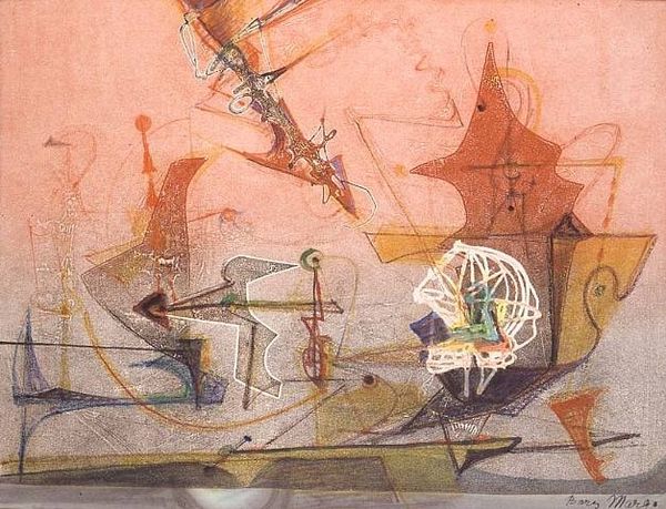 Editor: Here we have Lilia Carrillo's "A mediodía" from 1967, an oil painting that feels both ethereal and grounded. There's a push and pull between the light washes of color and the more defined shapes. What symbols or imagery stand out to you in this piece? Curator: What strikes me immediately is Carrillo’s negotiation with space and form. Notice how the forms, while abstract, seem to allude to biological shapes – perhaps cellular structures or even landscapes viewed through a microscope. Do you see how these resonate with pre-Hispanic codices? She's delving into a kind of visual language that predates colonial influence, attempting to tap into a collective, almost subconscious memory. Editor: I hadn’t considered the connection to pre-Hispanic imagery. The floating forms now seem less random and more deliberate, like glyphs I can't quite decipher. Curator: Precisely! Think about the emotional weight those indigenous symbols would have carried. This work embodies Art Informel which privileged intuition, pushing against academic structure and celebrating an immediate, authentic form of expression. It also resonates with a sense of searching, doesn't it? Editor: Absolutely. There’s a sense of searching for meaning, not just presenting it. A conversation with the self. Curator: It’s like an excavation, peeling back layers of cultural memory to reveal something essential about the human condition. It's fascinating to consider her exploration of national identity in post-revolutionary Mexico. Editor: This exploration of symbols and subconscious connections has given me a completely new perspective on Carrillo’s work. I see the cultural memory much more clearly now. Curator: And that's the beautiful thing about art - it speaks to us in a language beyond words.