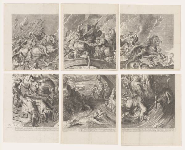 Curator: Before us is a print titled "The Twelve Months," dating back to 1687, a fascinating example of late Baroque artistry from an anonymous creator, residing here at the Rijksmuseum. It is created as an engraving. Editor: At first glance, it’s almost like a visual calendar, sectioned into miniature worlds. Each seems steeped in symbolism and rendered in incredibly precise detail despite its overall size, a mood akin to illustrated fairy tales and folk customs, wouldn’t you agree? Curator: Indeed, it offers a snapshot into the societal understanding of time and labor, wouldn’t you agree? Think about how the concept of distinct seasonal tasks intersects with early capitalist structures and how the print engages themes central to Dutch society at the time such as agriculture and community life. The engravings give life to agricultural labour with classical imagery. Editor: Right, and consider how this plays into an established tradition of representing time through allegorical figures. Each scene, named meticulously at its base, is rendered in distinct tones to express its individual sentiment, though the use of similar backgrounds unites them all. It’s interesting to consider the emotional weight carried by such iconic figures. Curator: Precisely! It also begs a crucial question about its initial function. Was it intended for an elite audience, meant to illustrate social ideals and hierarchies, or did it address broader social layers to show everyone’s work, lives, and places during the circle of time? Such artworks served to instruct moral virtues while also shaping perspectives on power dynamics and the accepted order. Editor: From a purely iconographic view, look at "July"—she holds what appears to be harvested wheat and an empty bag in an attitude that mirrors classical depictions of fertility or abundance—images that would resonate deeply and culturally. Similarly, we can reflect upon this composition as a set of totems through a shared collective visual memory! Curator: The layering of time, class, labor, and visual rhetoric is rich enough to offer a complex image of 17th-century Dutch experience, wouldn’t you agree? Editor: Certainly. Ultimately, it asks how deeply ingrained cultural representations can reveal much of the society that produced them and that these iconic representations stay with us, to the present day.