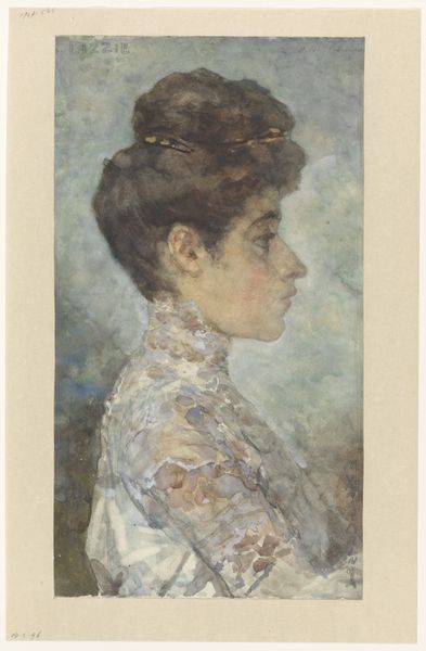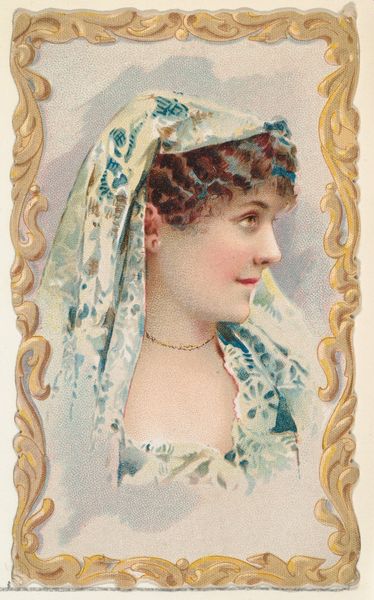 A. Salanti captured this young woman in watercolor, her profile turned to the left, adorned with flowers. The floral head covering is rich with symbolic resonance; flowers, across cultures, represent ephemerality, beauty, and renewal. I'm reminded of Botticelli's Venus, crowned with myrtle, each bloom a testament to transient beauty. The presence of flowers in portraiture serves as a 'memento mori,' a subtle nod to life's fleeting nature. The veil, too, has a rich history, from ancient Roman veiling rituals to its diverse symbolism in religious contexts. The psychoanalytic aspect of the veil reveals both concealment and allure. It invites the viewer to penetrate the surface, to engage with the hidden, the mysterious, and the subconscious. Observe how this combination—flowers and veil—captures a sense of momentary beauty. These symbols continue their dance through time.