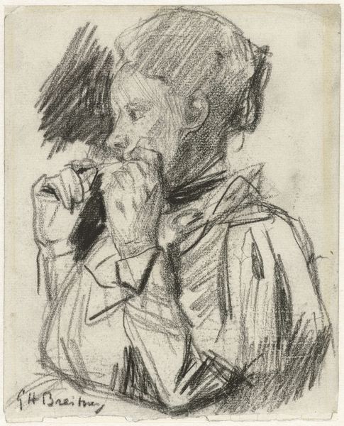 This drawing by Otto Scholderer depicts a fishmonger, his hand raised to his mouth as he calls out to potential customers. The open mouth is a potent symbol, an ancient gesture of communication and proclamation, echoing through time. Consider its resonance in classical oratory, where a speaker’s voice and projection were central to persuasion. This is seen in the way the Greeks would amplify their voices in the theater. Even in religious art, the open mouth is seen in depictions of prophets delivering divine messages, a motif that carries through different cultures and eras. In Scholderer’s portrayal, the fishmonger's call becomes a primal act, a bridge connecting him to an ancestral line of communicators. It speaks to the innate human need to be heard and to connect, tapping into the collective memory. It is a gesture that is as old as humanity, echoing through the ages in this drawing.