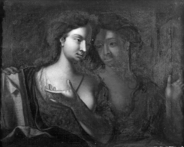Editor: Here we have Jacob d’Agar’s "Tvende fruentimmer i halv figur," painted sometime between 1657 and 1715. It's rendered in oil paint on canvas. I'm immediately struck by the composition - two women, one looking directly at the viewer, the other in profile. It feels intimate and yet somehow… staged. What historical currents do you see at play in this double portrait? Curator: It's a compelling piece, isn't it? Considering the period, we see echoes of the Baroque era's emphasis on drama and sensuality, but filtered through the lens of social and courtly expectations. It’s fascinating how d’Agar navigates the tension between private life and public image. Who are these women, what class do they come from, and what sort of image is he constructing for them? The nude format could challenge the strict moral conventions. How might it have been viewed by its original audience? Editor: So, you're suggesting it's less about an honest depiction of individuals and more about projecting a particular image, influenced by the socio-political context? I notice how both are posed, and that makes it feel like there is some construction for political purposes. Curator: Precisely! Consider the role of portraiture in the 17th and 18th centuries. It wasn't just about likeness; it was a tool for asserting status, power, and ideals. The artistic skills also represent what one would expect, Baroque was an important tool in power at the time. The painting uses those ideas to enhance the position of these women. We need to think about how artistic expression served these functions, perpetuating or subtly challenging prevailing norms. The artist had certain responsibilities when creating works such as this. What is more powerful is the balance achieved between what is politically and culturally conventional and something a little unconventional, or new for the time. Editor: I see. So, deciphering this work requires understanding the political and social machinery that shaped its creation and reception. Thanks for making this accessible to me! Curator: And for prompting such insightful questions. Reflecting on the original context truly deepens our understanding.