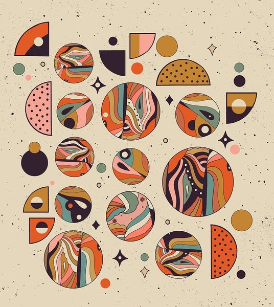 This is Collection decors et couleurs Pl.20 by Georges Valmier, and it feels like it was made with gouache or maybe even screen printing - something that gives you those flat, opaque colors. It's all about shapes bumping up against each other. It's almost like a visual game. The shapes are neat and geometric, but how they come together, that's where the party is! Take, for instance, the main panel. The circles with dots inside and the little angular shapes, they create this rhythm. It's a structured playfulness, like a jazz composition. I love how the colors aren't trying to be realistic; they're just there to make each other pop. It puts me in mind of some of the Bauhaus textile designs. But what Valmier brings to the table is his own sense of quirky playfulness, something that elevates the design beyond mere decoration. In the end, it's this sense of joy that lingers, reminding us that art is always a conversation, a dialogue of ideas across generations.