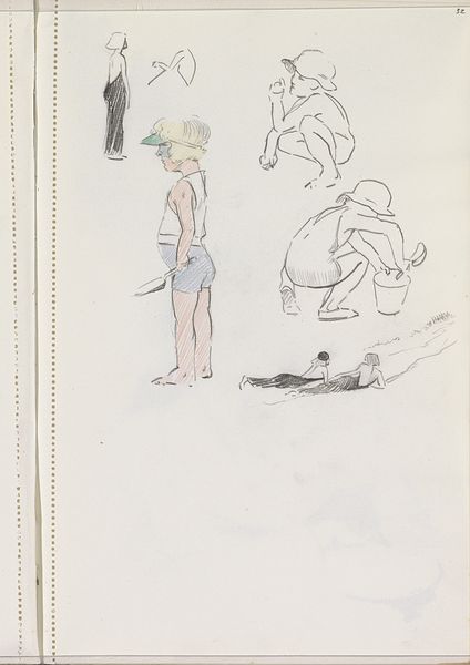 Otto Verhagen made this work, Figuurstudies, onder andere een vrouw in zwemkleding, using pen and ink, probably in a sketchbook. What strikes me about it, is its open, exploratory approach to artmaking. The textures here feel both delicate and immediate, the figures described with such nimble, simple lines. You can almost feel Verhagen’s hand moving across the page, capturing these fleeting moments. Look at the figure on the left. The thin washes of color give shape to the body, but the ink line is dominant. It’s a kind of transparency that speaks to the artist's willingness to expose the structure of the work. It reminds me a bit of Matisse’s line drawings, especially in its pursuit of simple expression. Ultimately, a piece like this is a reminder that art is an ongoing conversation, full of sketches and experiments, and multiple ways of seeing the world.
