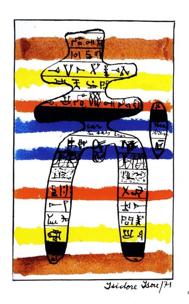 This "Untitled" piece is by Alevtyna Kakhidze. It’s hard to know exactly when it was made, but the quick, gestural marks suggest a real urgency. The artist uses what looks like marker and maybe some colored pencil to create a pretty raw, immediate image. I'm really drawn to the way the color is blocked in, almost like a kid's drawing, but with a kind of subversive edge. The blue and yellow of the Ukrainian flag, for example, slapped across the back of a cartoon-like animal. And then all the names, scrawled and listed. It’s like a visual poem or a political rant, all crammed onto one page. That skeletal arm reaching up on the left is especially striking. It’s so raw and vulnerable, yet there's also a strength in its simplicity. It reminds me a bit of some of Philip Guston’s later work, that same kind of directness and willingness to be messy. It embraces a kind of ambiguity and the multiple ways we experience the world.