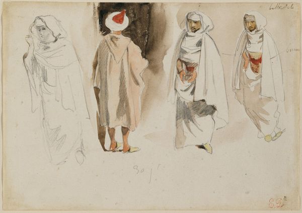 Auguste Raffet created this watercolor of “Costume Studies of Three Dervishes in Kaffa,” sometime in the first half of the 19th century. Raffet, who served as a draughtsman for the French army, travelled extensively with various military expeditions. These studies of Dervishes—members of a Sufi religious order—offer a glimpse into the dynamics of cultural exchange and representation during a period marked by European expansion. What do these figures tell us about the artist’s perceptions, and the prevailing European views of non-Western cultures? Is this an attempt at ethnographic documentation, or is it more invested in the romanticization of the ‘Orient’? These questions encourage us to consider the power dynamics inherent in how different cultures perceive and represent one another. As you consider this image, reflect on the gaze through which it was created.