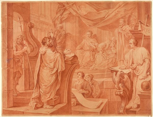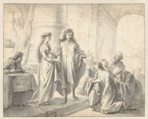 Editor: So, this is Jacques Stella’s "The Mystic Marriage of Saint Catherine," housed at the Harvard Art Museums. The drawing has such delicate lines. How might we interpret this from a different perspective? Curator: Looking at the drawing’s creation, we see labor practices at play. Stella's workshop likely involved assistants in the repetitive aspects of drawings like these. Were the materials locally sourced? How did the availability and cost of paper and ink affect production? Editor: That's a perspective I had not considered! It moves past just the aesthetic. Curator: Exactly! Consider the social context: Was Stella responding to a specific market demand for these types of drawings? These questions ground the artwork in its material reality. Editor: I see. So, beyond the religious symbolism, it's also a product of its time, shaped by production and consumption. Thanks for pointing that out. Curator: Precisely. It’s about seeing beyond the surface to understand the conditions of its making and its place in a broader economic system.