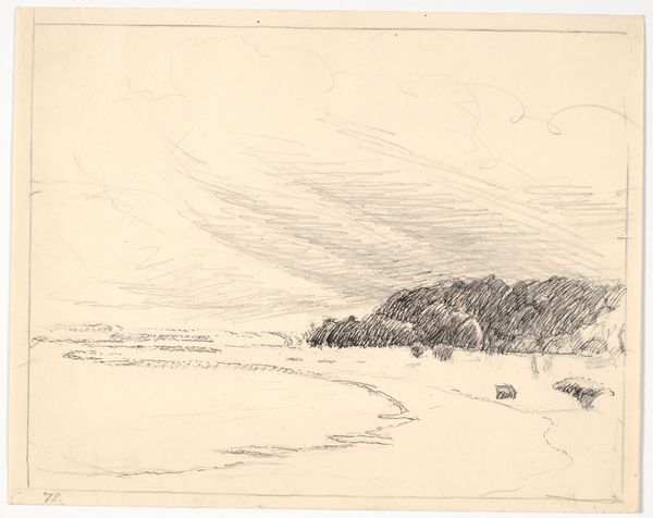 Editor: So, here we have "En markvej med lidt buske i forgrunden. I baggrunden et skovbryn"—"A country road with some bushes in the foreground. In the background, a forest edge"—penciled by P.C. Skovgaard in 1872. It’s currently hanging in the SMK. I’m immediately struck by the sense of quiet observation. It's subtle. What catches your eye? Curator: It whispers, doesn’t it? Makes you lean in close, as if afraid to disturb something. I feel like I'm intruding on a private moment between the artist and the land. It’s clearly Romantic in spirit, that yearning for nature... Did you know Skovgaard was a central figure in the Danish Golden Age? Think about it, the nation was trying to define itself. Editor: Ah, the whole national identity thing. So, nature as a symbol… Curator: Exactly. He wasn't just drawing a road; he was drawing Denmark, perhaps even his hopes for it. See how the road curves, inviting you in? And that light! Not dramatic, but…gentle. What does that soft light evoke for you? Editor: Hmmm... A calmness? A sense of belonging maybe? It also feels… unfinished, like a fleeting impression. Curator: Beautifully put! And maybe that incompleteness is the point. It leaves space for *us*, doesn’t it? Space to dream, to reflect, to feel our own connection to the landscape, to ourselves. Maybe *we* complete it. Editor: That’s a really interesting way to think about it, I hadn’t considered that the "unfinished" nature is a sort of window for the viewer. It kind of makes it even more timeless. Curator: Precisely. That invitation to engage. Skovgaard offers us a shared journey, a moment of quiet contemplation, on a humble country road. Not so humble, really. Editor: Thanks! This has given me so much to consider about the artwork.