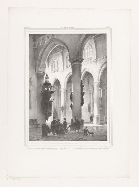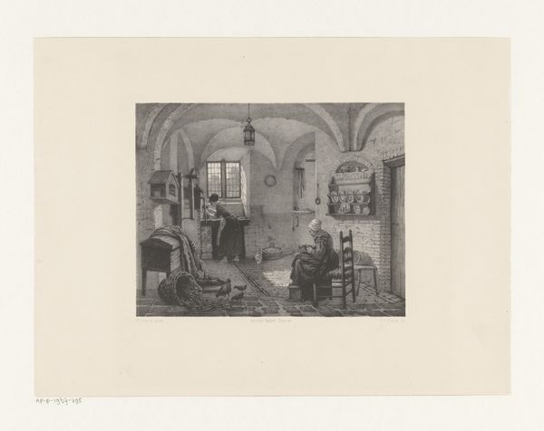 Jan van der Kaa created this print of two figures by a grave monument in a church. It’s a lithograph, a printmaking technique that relies on the contrasting properties of grease and water. The artist likely drew directly onto a block of fine-grained limestone with a greasy crayon, creating a design that attracts oil-based ink. The stone is then dampened with water, which repels the ink in the undrawn areas. When paper is pressed to the block, the image transfers. This process can be repeated to create multiple identical prints. The appeal of lithography lies in its relative ease and directness. Unlike engraving, where material is physically removed from a plate, lithography preserves the artist's hand. The finished print has a soft, tonal quality, almost like a pencil drawing. In the 19th century, lithography democratized image-making, making art more accessible than ever before.