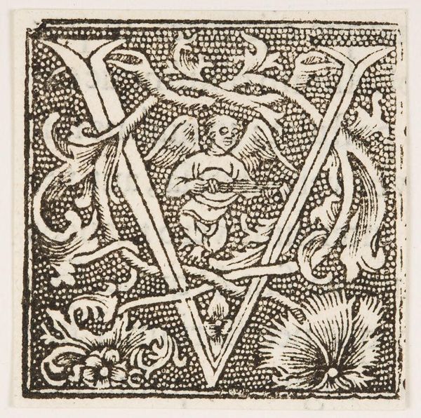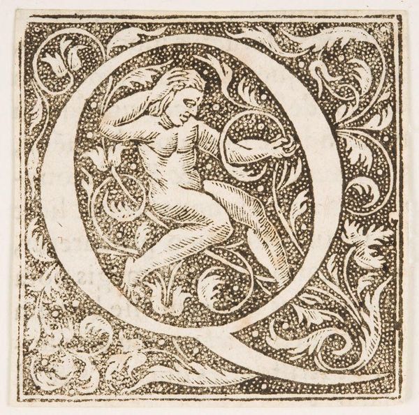Editor: Here we have Letter Q, by an anonymous artist. It seems to be a woodcut. It's so intricate! How should we think about this piece? Curator: Consider the labor involved in carving such detail into wood. This isn't just decoration; it's a testament to craft. What societal role did these prints play, and how were they consumed? Editor: So, less about aesthetics and more about production and use? Curator: Precisely. How does the availability of printed materials affect literacy and dissemination of knowledge at the time? How does it blur the line between art and craft? Editor: Fascinating! Thinking about it as a product of labor changes everything. Curator: Indeed. It's about unpacking the social and economic forces behind its making.