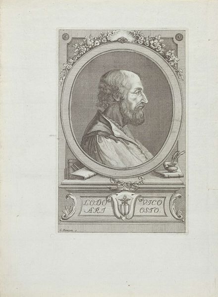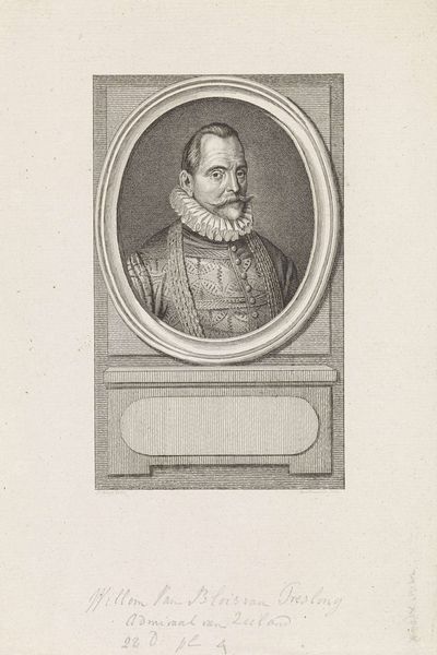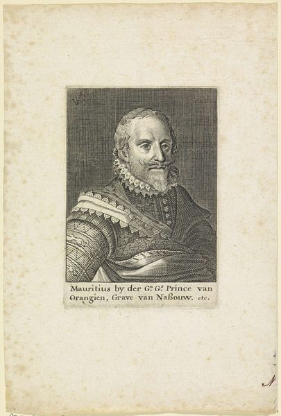 Editor: Here we have Pieter de Jode II's "Portret van Ferdinand van Beieren," a print dating from around 1628 to 1670. The meticulous detail and somewhat severe expression give it a formal, imposing feel. What do you see in this piece, especially given its historical context? Curator: The severity you noticed isn’t accidental. The visual language here is rooted in the projection of power. The ornate armor, the stiff ruff—these aren’t just fashion statements; they’re loaded with cultural meaning. Consider the oval frame itself: an enclosure that both protects and presents him, almost like a sacred icon. Ferdinand's gaze meets ours, directly, asserting authority and demanding respect. Do you notice anything else in the portrait’s symbolic weight? Editor: The inscription beneath the portrait, could that also add to the feeling of authority? Curator: Absolutely! The inscription explicitly states Ferdinand’s titles: Count Palatine and Duke of Bavaria. Language and image combine to solidify his position. Think about the psychology of portraiture at the time; these weren’t casual snapshots. They were carefully constructed representations designed to influence perceptions of the subject and reinforce dynasty. And what impact does that meticulous detail have, rendering him in a timeless way? Editor: It's like he's meant to be remembered this way, a carefully crafted image for posterity. So much meaning packed into seemingly simple choices! Curator: Precisely! The enduring power of symbols, isn't it fascinating? A single image carrying generations of meaning. Editor: It really is. I’ll never look at a portrait the same way again.